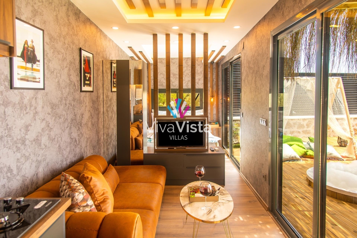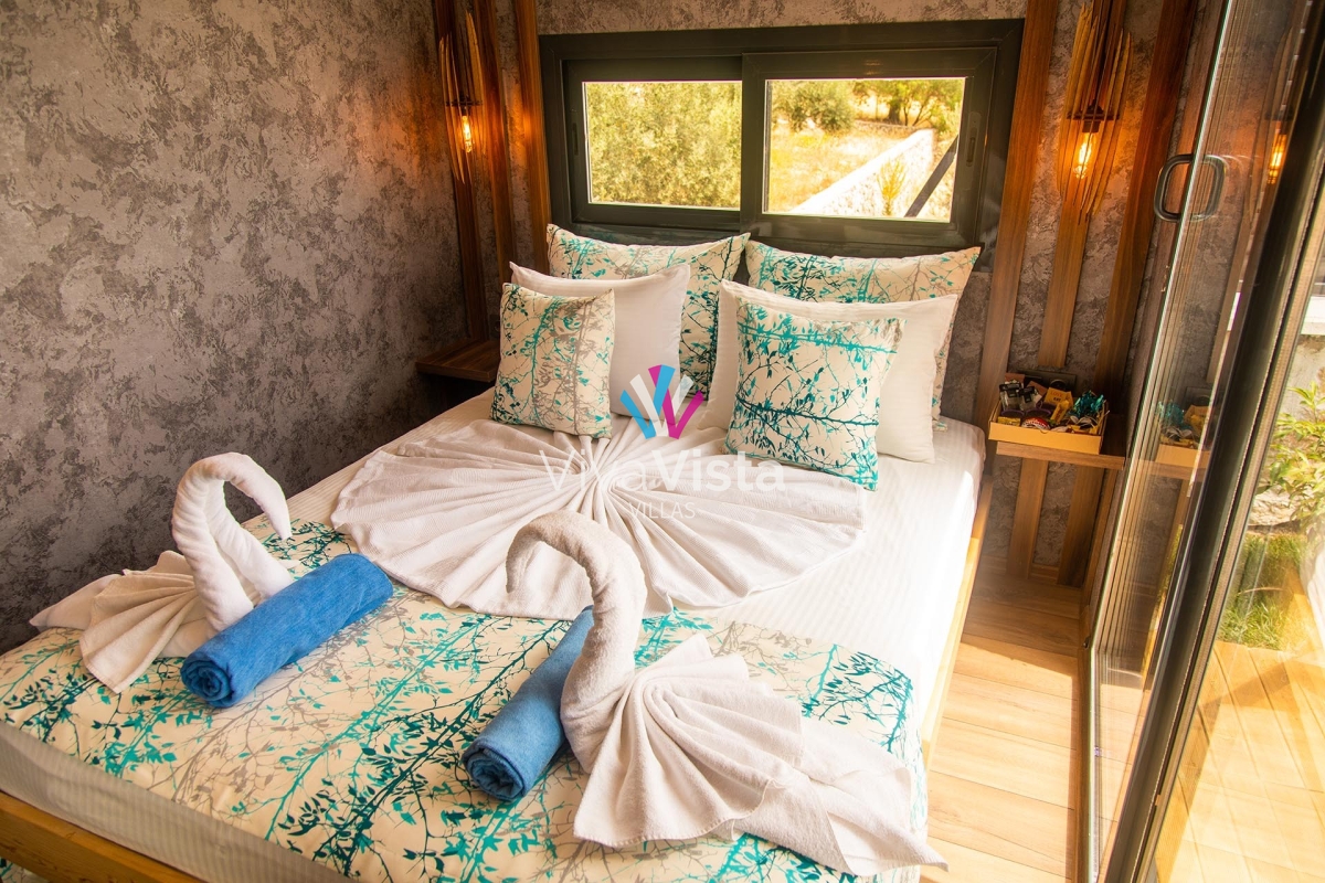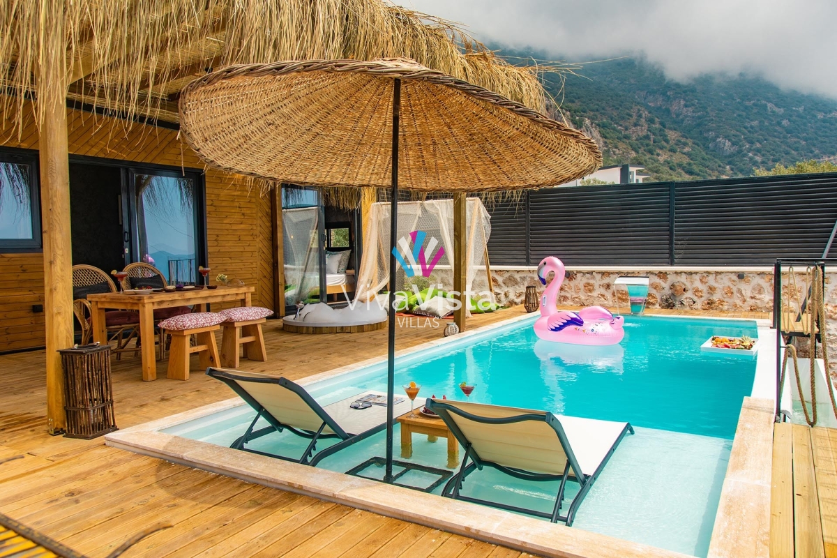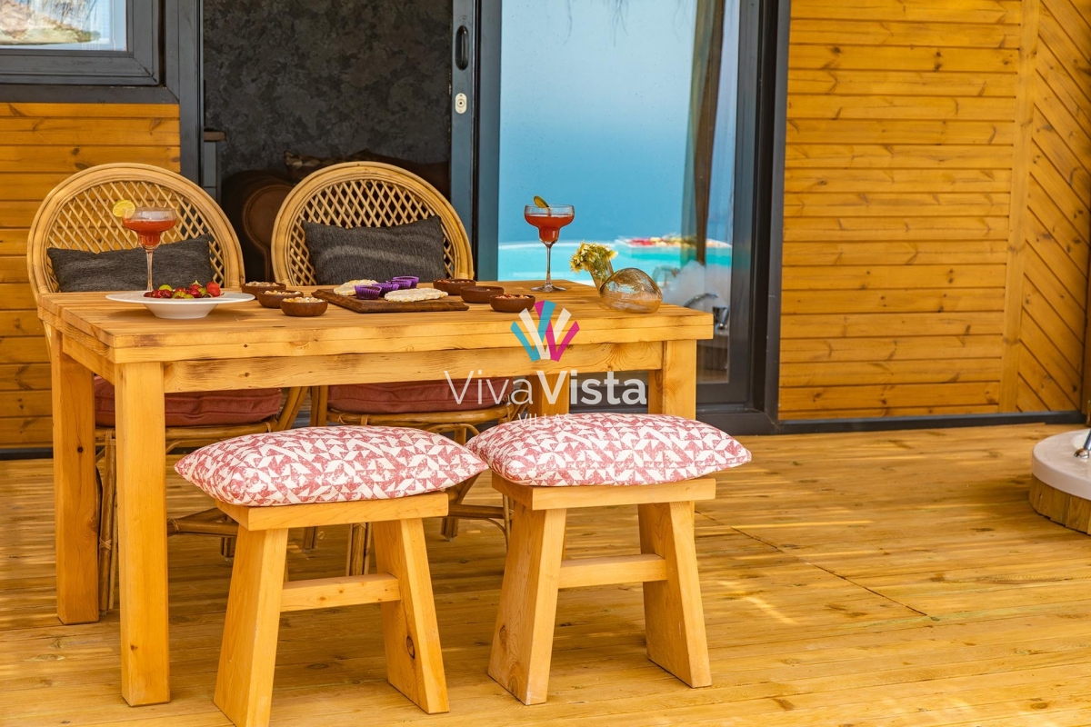 Viva Vista 1032, mavinin ve yeşilin en güzel tonlarını bir arada sunan, eşsiz konumuyla huzurlu bir tatilin kapılarını aralıyor. 2 kişi kapasitesiyle, kaliteli, şık ve romantik bir tatil arayanlar için doğru adres olan bu özel villa, konsept tasarımı ve gözlerden uzak yapısıyla misafirlerine tam anlamıyla mahremiyet sağlıyor.