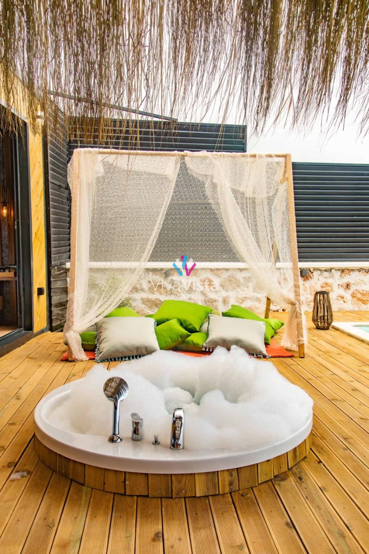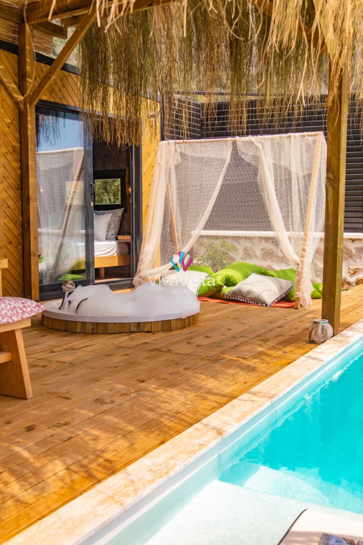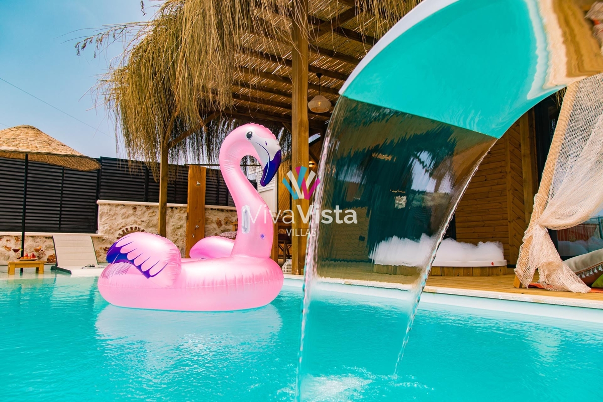 Viva Vista 1032, mavinin ve yeşilin en güzel tonlarını bir arada sunan, eşsiz konumuyla huzurlu bir tatilin kapılarını aralıyor. 2 kişi kapasitesiyle, kaliteli, şık ve romantik bir tatil arayanlar için doğru adres olan bu özel villa, konsept tasarımı ve gözlerden uzak yapısıyla misafirlerine tam anlamıyla mahremiyet sağlıyor.