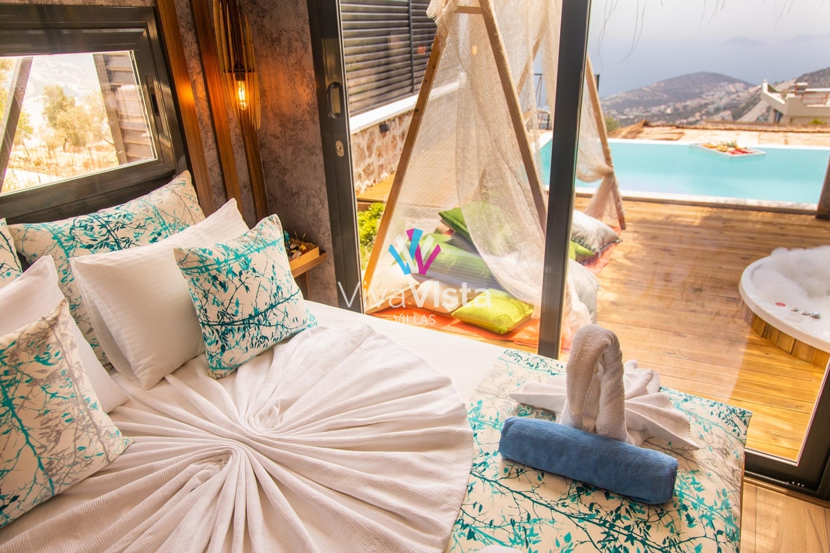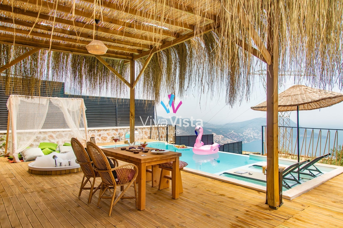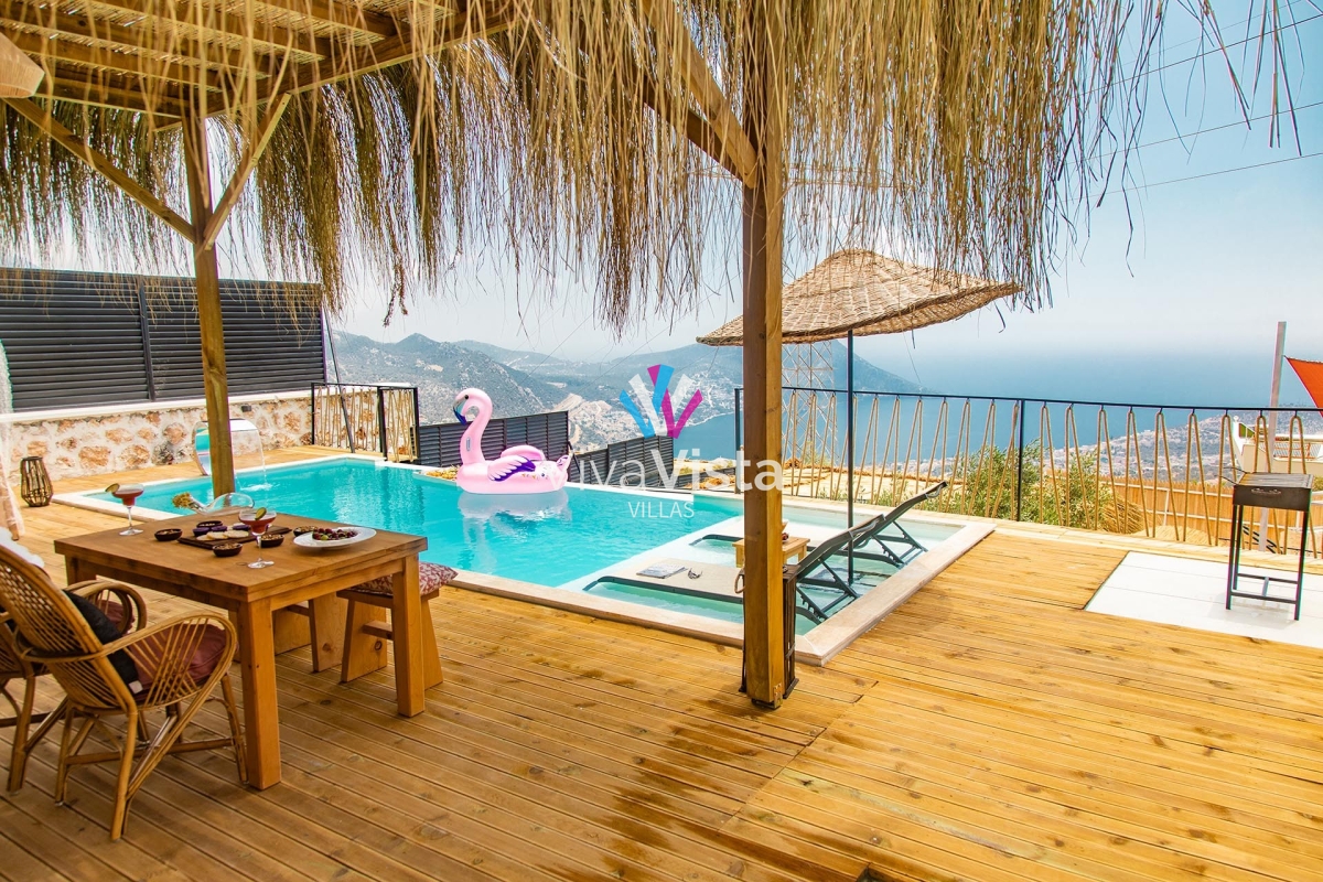 Villada masajlı jakuzi, dönen televizyon, salıncak, sığ havuz, barbekü, teras masası ve panoramik Kalkan manzarasına sahip sonsuzluk havuzu gibi konforlu ve keyifli detaylar bulunuyor. Tüm bu özellikleriyle Viva Vista 1032, mutlu, güvenilir ve estetik bir tatil geçirmeniz için size kapılarını sonuna kadar açıyor.