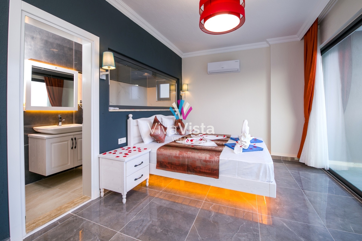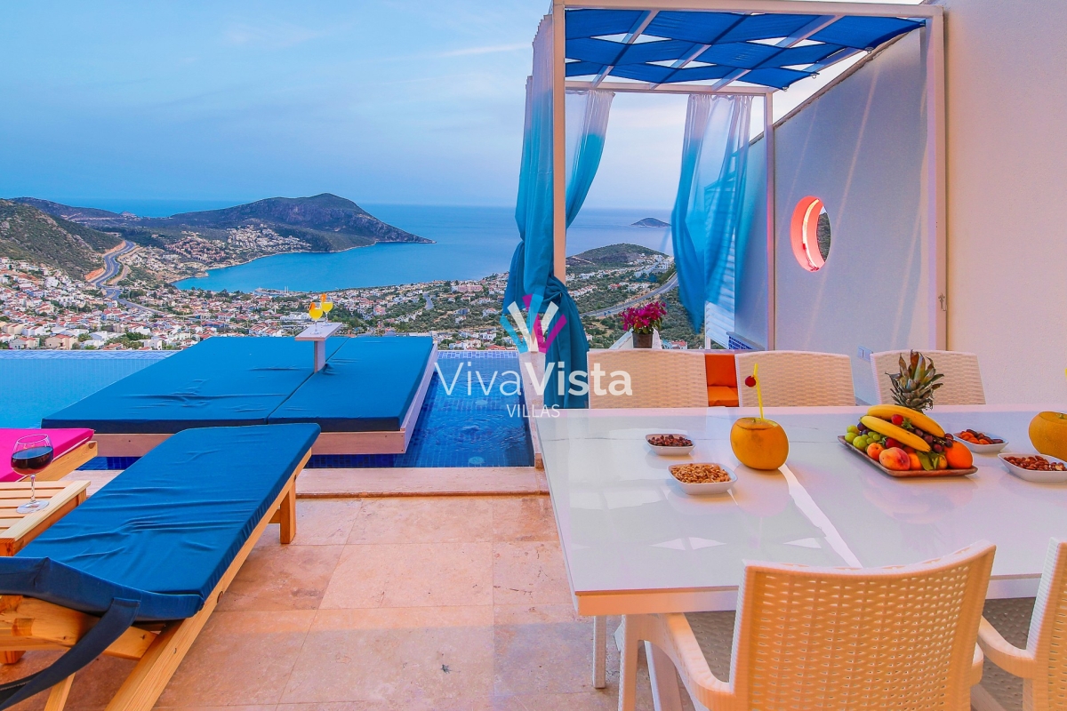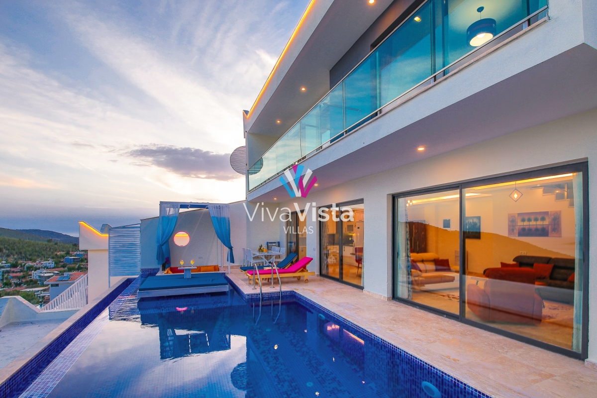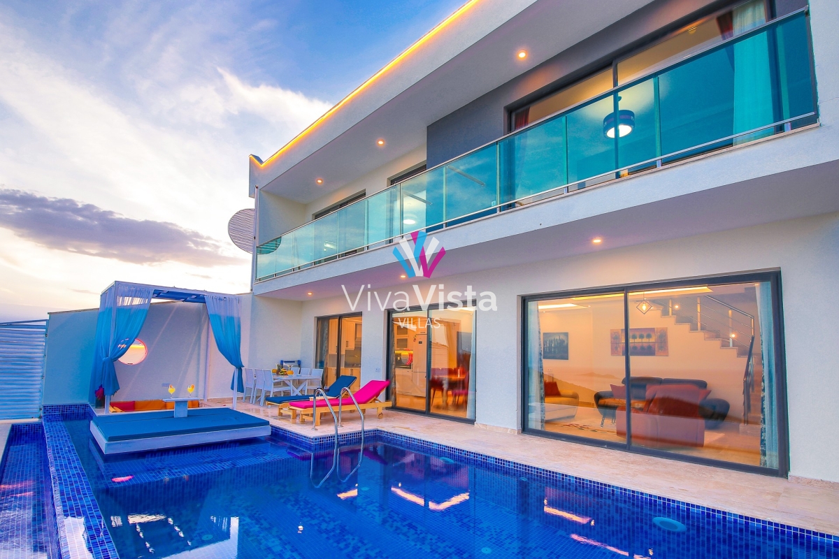 Viva Vista 2140, Kalkan manzarasına hâkim konumuyla misafirlerine huzurlu ve konforlu bir tatil deneyimi sunuyor. 2 yatak odalı (1 çift kişilik yatak, 2 tek kişilik yatak) yapısıyla 4 kişilik kapasiteye sahip olan villamız, lüks tasarımıyla öne çıkıyor.