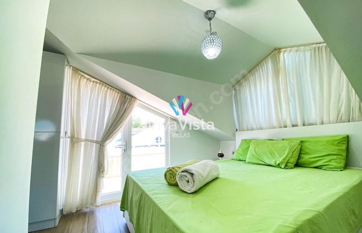 Modern ve ferah mimarisiyle dikkat çeken villamız, misafirlerine hem konforu hem de huzuru bir arada yaşatır. Geniş yaşam alanları sayesinde herkes için yeterli alan sunarken, tatilinizi ev rahatlığında geçirmeniz için özenle dizayn edilmiştir.