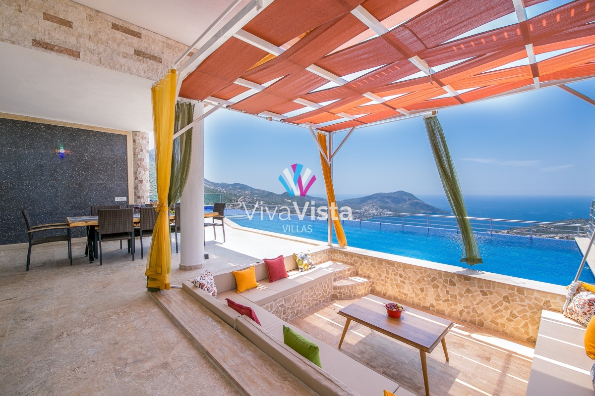 Havuz başında yer alan gömme köşk ve yemek masası, sevdiklerinizle keyifli vakit geçirmeniz için özel olarak tasarlanmıştır. Burada içeceğinizi yudumlarken hem eşsiz deniz manzarasının hem de tertemiz havanın tadını çıkarabilirsiniz.