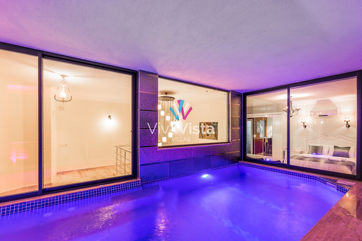 Villamızda ayrıca ısıtmalı iç havuz bulunur, bu sayede tatilinizi her mevsimde keyifle yapabilirsiniz. (Havuz ısıtması günlük 1.500 TL’dir.) Modern ve konforlu mobilyalarıyla öne çıkan villamız, ihtiyaç duyabileceğiniz tüm araç ve gereçlerle donatılmıştır.