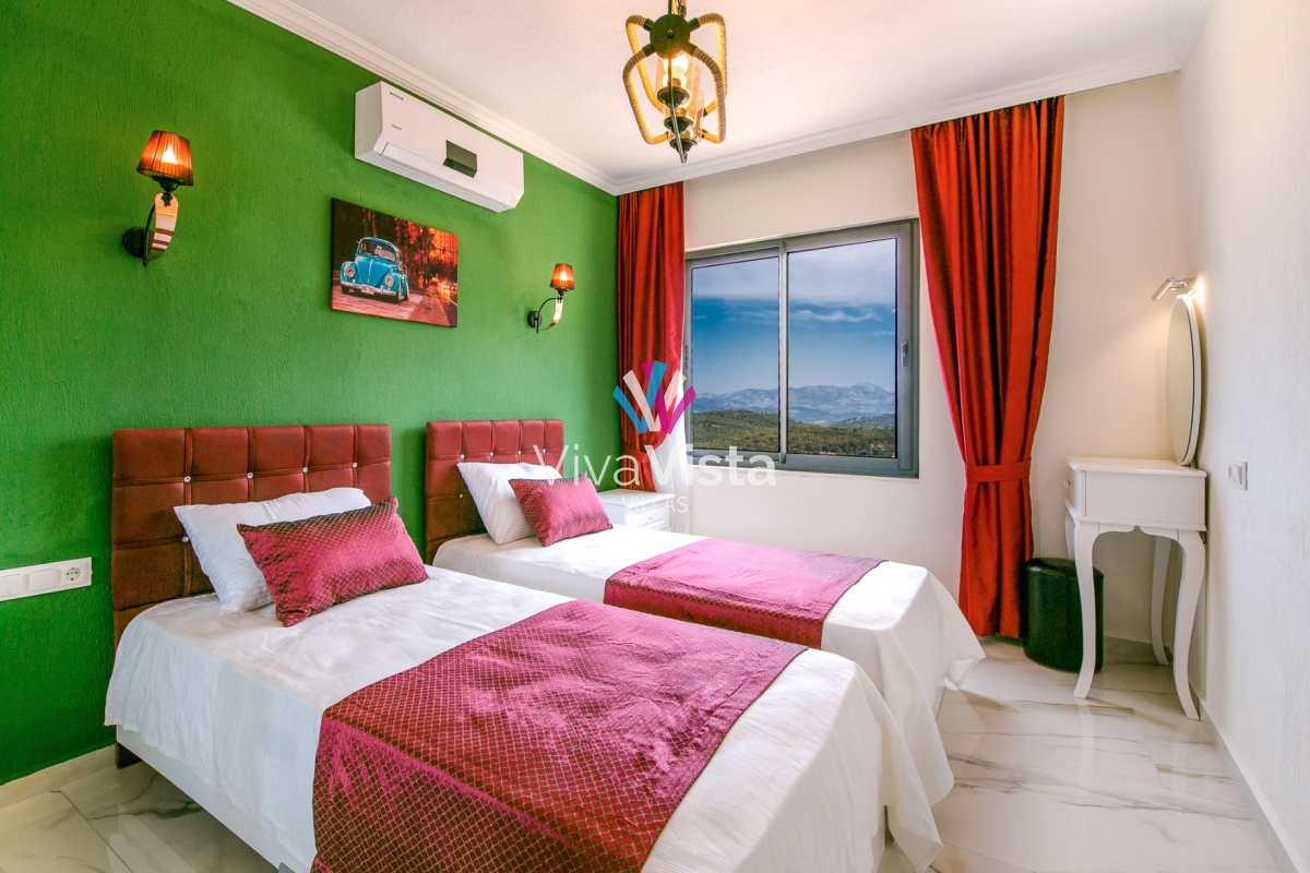 Viva Vista 5008, çift havuzu, taş ve sütun detaylarıyla yalnızca bir villa değil, adeta bir köşkü andırıyor. 10 kişilik kapasitesi ile geniş aileler ve kalabalık arkadaş grupları için tasarlanan bu lüks villa, konforu ve ihtişamı bir arada sunuyor. Antalya Kalkan’ın en güzel tepelerinden birinde, gözlerden uzak konumuyla misafirlerine özel bir tatil imkânı sağlıyor.